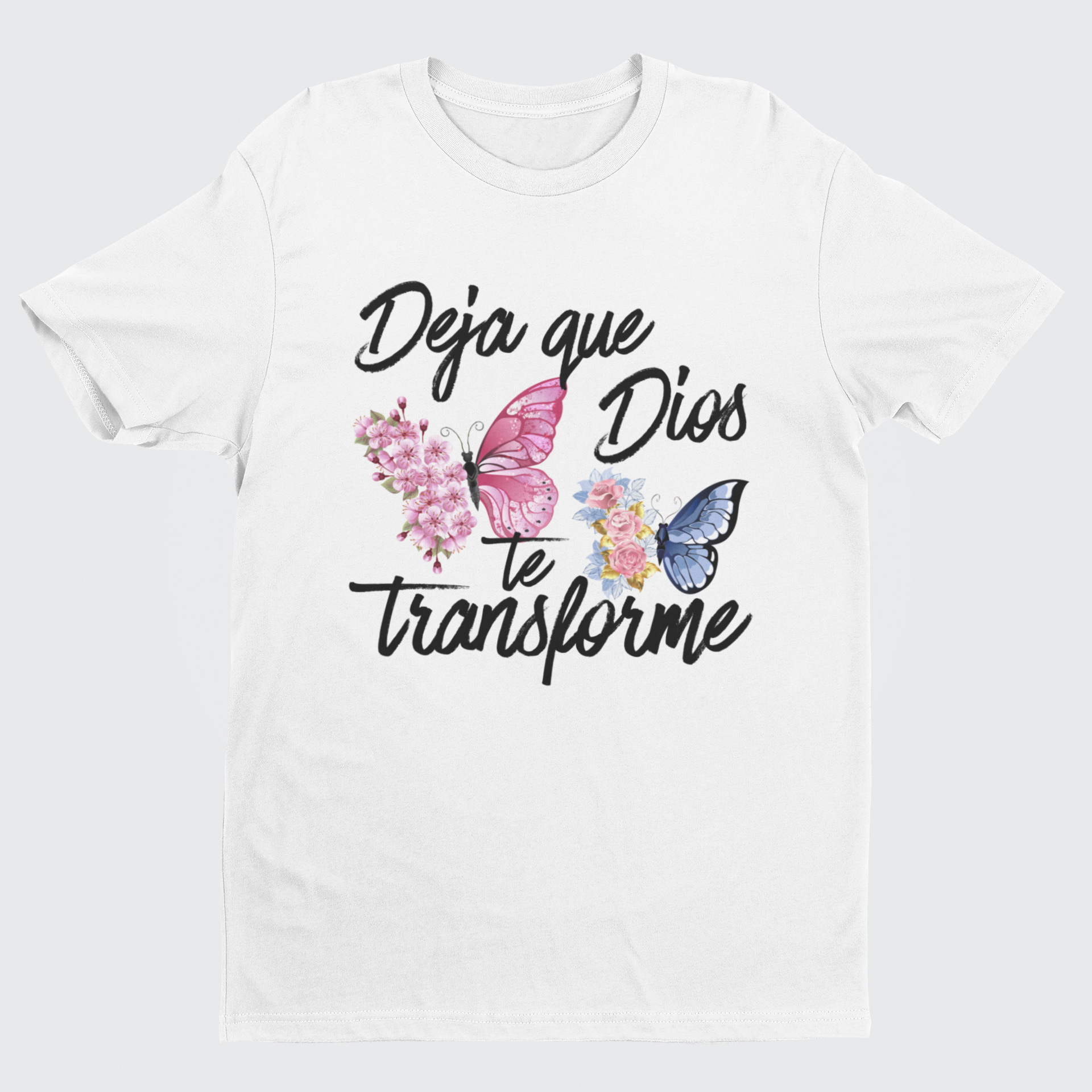 Esta camiseta cristiana para mujer y niña, confeccionada en algodón 100%, ofrece una comodidad excepcional y un tacto suave. Su estampado DTF de alta calidad refleja el mensaje inspirador "Deja que Dios te transforme".