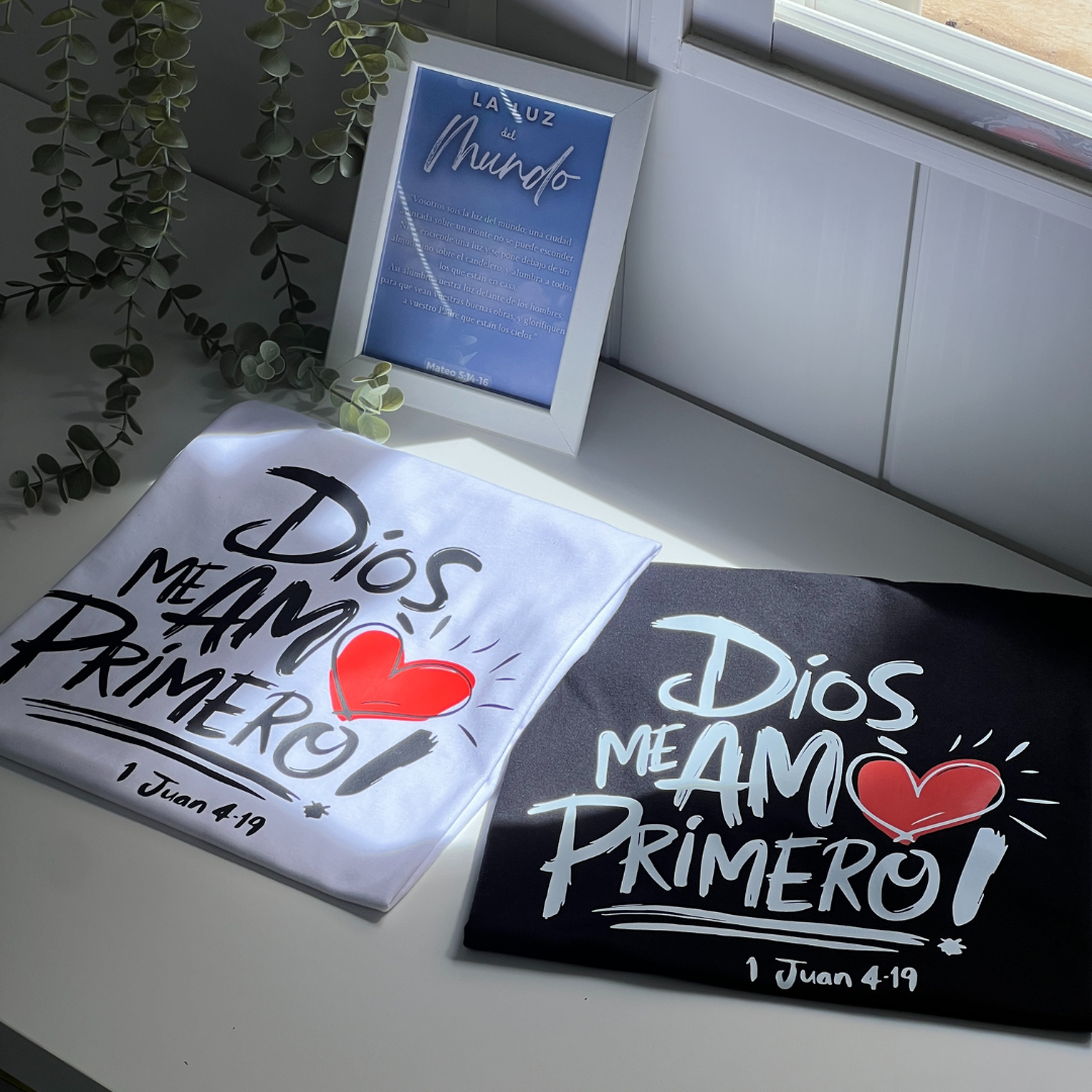 ¡Demuestra tu amor por Dios con estilo con nuestra camiseta! Fabricada con algodón de alta calidad, esta camiseta de manga corta unisex está disponible en tallas para adultos y niños. Es perfecta para compartir tu fe de una manera divertida y original. ¡Dios me amó primero y yo le quiero mostrar mi amor con esta camiseta! ¿A qué esperas para conseguir la tuya?