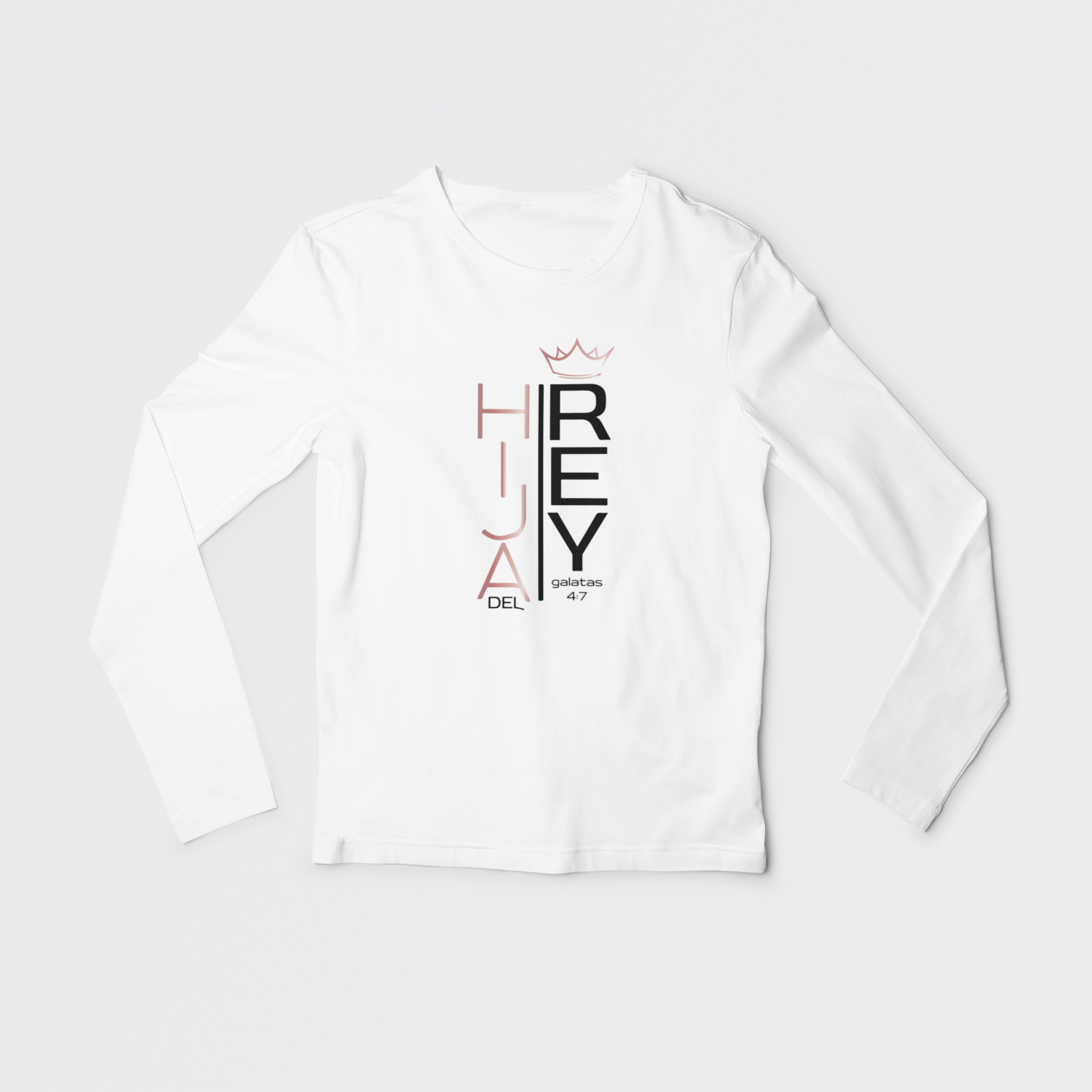 ¡Celebra tu fe con la camiseta cristiana Hija del Rey! Confeccionada con algodón suave y duradero, esta camiseta de manga larga cuenta con un diseño único en vinilo textil con el mensaje inspirador de Galatas 4:7. ¡Sé una hija o un hijo del Rey con estilo y comodidad!